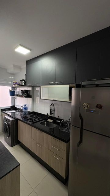 54m²; Andar alto; 02 dormitórios, sala 02 ambientes com sacada com churrasqueira, cozinha, banheiro, área de serviço, 02 vagas de garagem descoberta. Móveis planejados na cozinha. R$ 320.000,00. O Residencial Green Ville é um condomínio torre única com área de lazer com piscina, área gourmet com churrasqueira, playground, espaço pet e espaço zen.