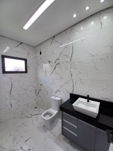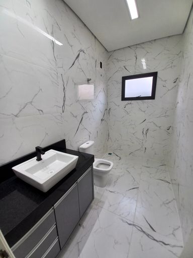 Casa moderna e bem distribuída, composta por 3 dormitórios, sendo 1 suíte, sala de jantar integrada à cozinha, sala com pé-direito alto, lavabo, lavanderia e banheiro social.